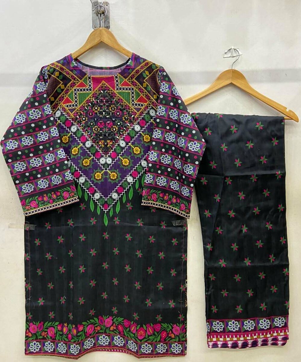 Woman's Stitched Mirror Work Printed Shirt and Trouser