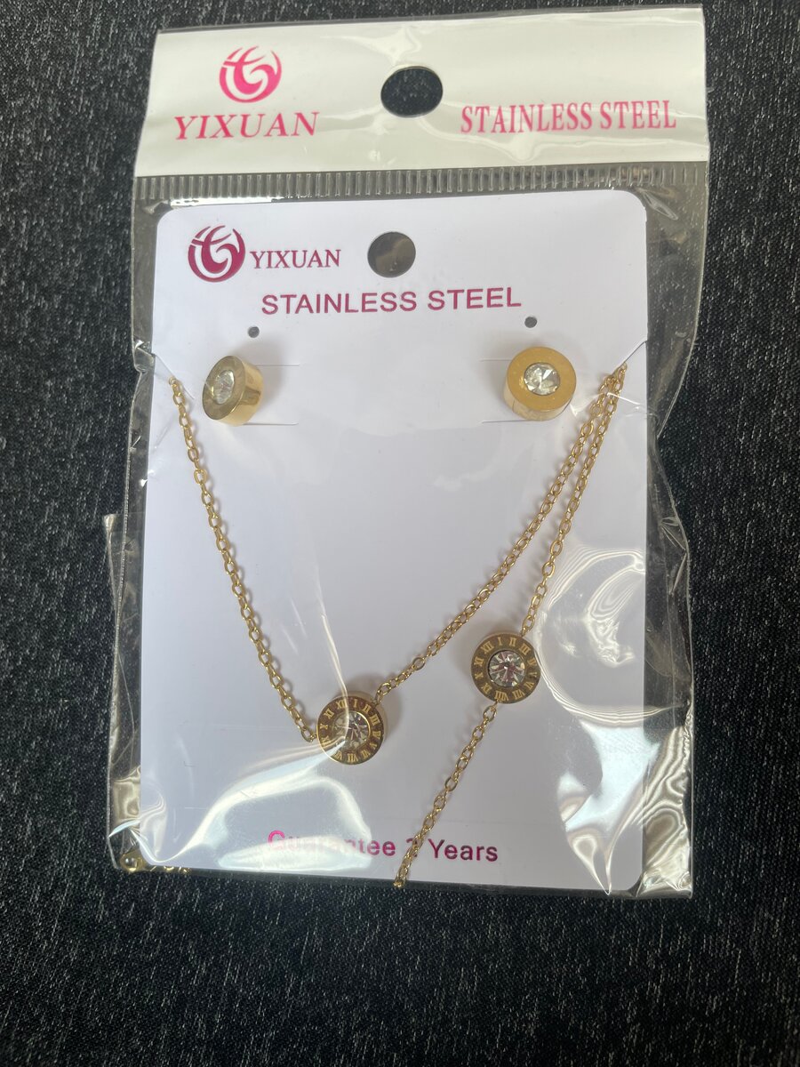 Découvrez notre parure élégante en acier inoxydable, composée d'un collier et de boucles d'oreilles assorties. Ce bijou résistant est parfait pour sublimer vos tenues quotidiennes tout en offrant une touche de sophistication. Design intemporel qui conviendra à toutes les occasions, de la réunion professionnelle à la soirée entre amis.