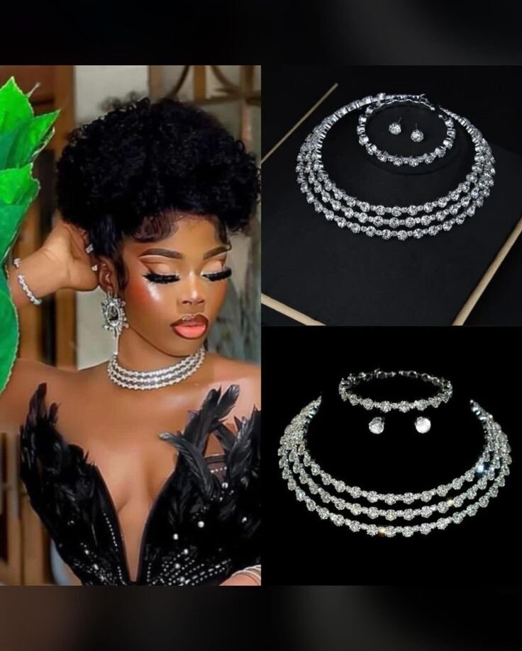 Éclatante parure en cristal, parfaite pour soirées et événements spéciaux. Comprend un collier, bracelet et boucles d'oreilles assortis. Accentue votre tenue avec une touche de glamour et de raffinement. Idéale pour mariages ou occasions festives.