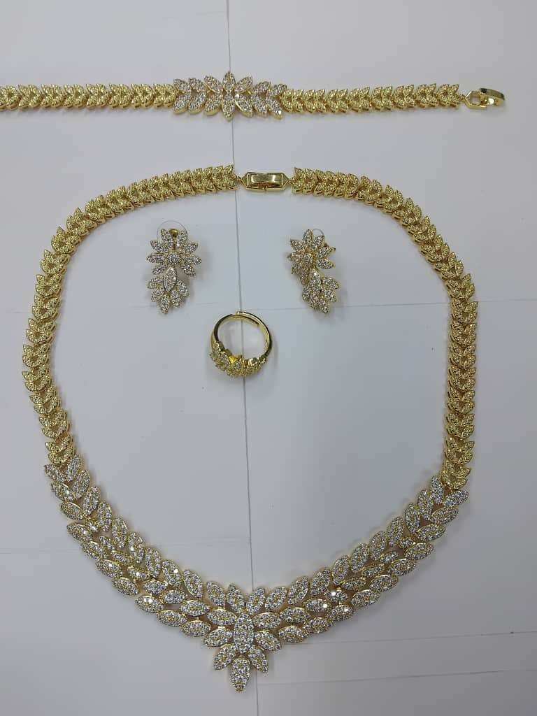 Sublimez votre tenue avec cette parure éblouissante comprenant un collier, des boucles d'oreilles, un bracelet et une bague. Parfaite pour des occasions spéciales, elle apporte une touche de glamour inégalée. Son design raffiné et ses éclats brillants vous feront briller sous les projecteurs.