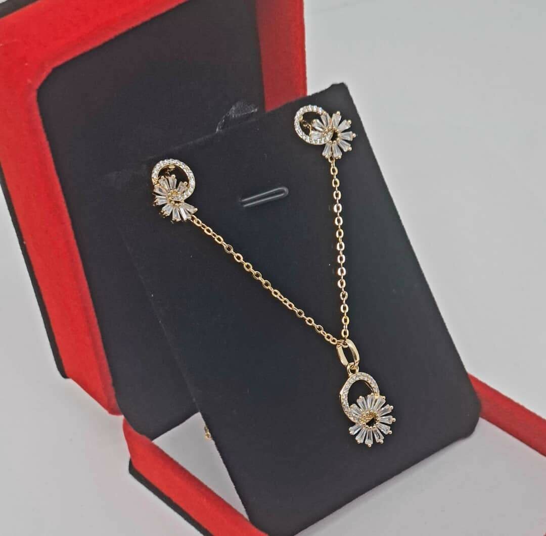 Sublimez votre style avec cette parure élégante en plaqué or. Comprend un collier délicatement orné et une paire de boucles d'oreilles assorties. Idéale pour des occasions spéciales ou comme cadeau inoubliable.