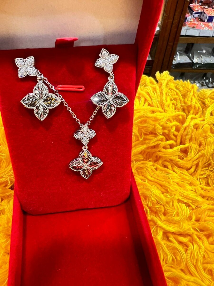 Découvrez notre parure de bijoux élégante, idéale pour sublimer vos tenues. Composée d'un collier raffiné et de boucles d'oreilles assorties, elle est parfaite pour les occasions spéciales. Offrez-vous un style unique avec ces designs fascinants et brillants, conçus pour captiver les regards.