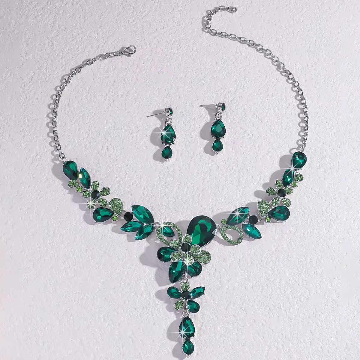 Cette magnifique parure de bijoux, composée d’un collier et d’une paire de boucles d'oreilles, est ornée de cristaux éclatants couleur émeraude. Idéale pour sublimer vos tenues de soirée et attirer tous les regards lors de vos événements spéciaux. Cette parure est le choix parfait pour celles qui cherchent l'élégance et le raffinement. Faites la différence avec ce bijou d'exception.