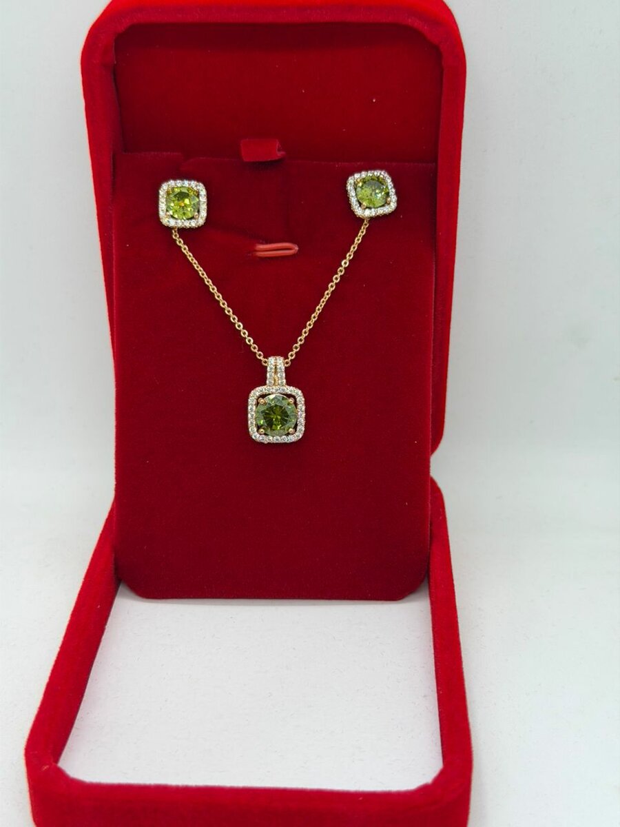 Sublimez votre style avec cette élégante parure comprenant un pendentif et des boucles d'oreilles ornés de pierres émeraude éclatantes. Parfait pour les occasions spéciales ou comme cadeau inoubliable, ce set rehausse toutes les tenues avec raffinement et allure.