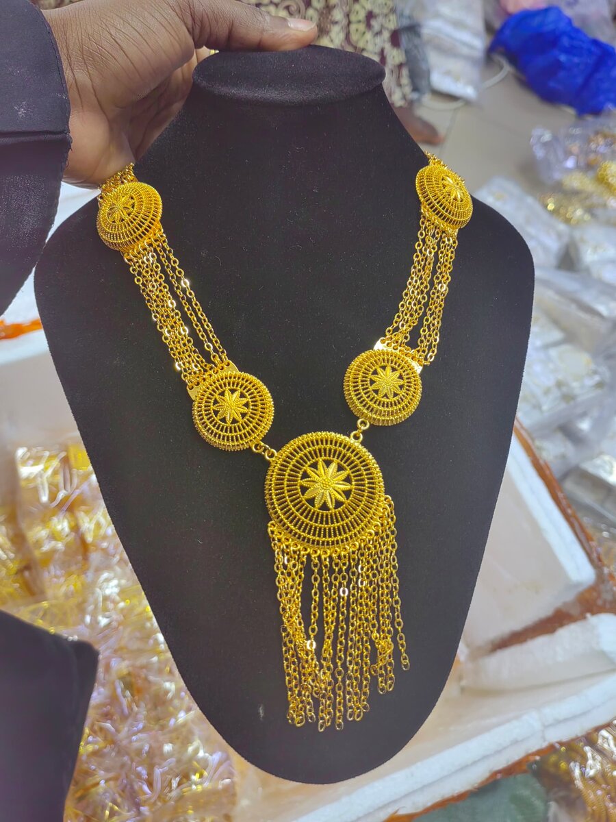 Accentuez votre style avec cette parure de bijoux dorés élégante. Composée de colliers et bracelets, cette collection ajoute une touche de sophistication à n'importe quelle tenue. Idéale pour les soirées, fêtes ou mariages. Matériaux de haute qualité assurant durabilité et éclat.