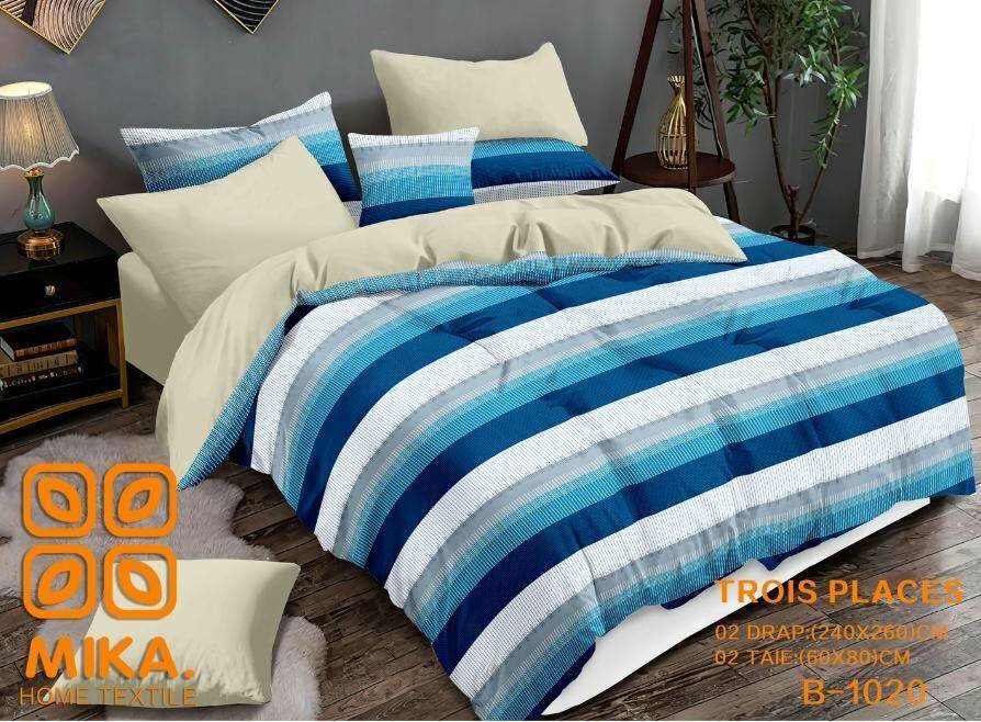 Transformez votre chambre avec cette élégante parure de lit bleue Mika. Conçue pour un lit trois places, elle inclut deux draps et deux taies d'oreiller. Fabriquée avec des matériaux de haute qualité, elle offre confort et style. Idéale pour un sommeil apaisant et une décoration chic.
