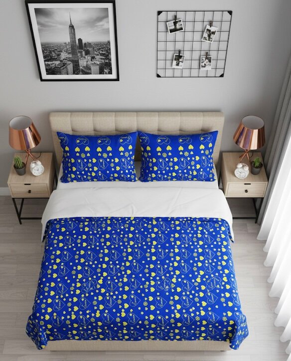 parure de lit bleu vif ornée de motifs cœurs. Fabriquée à partir de matériaux doux et durables, elle assure un confort optimal pour des nuits paisibles.