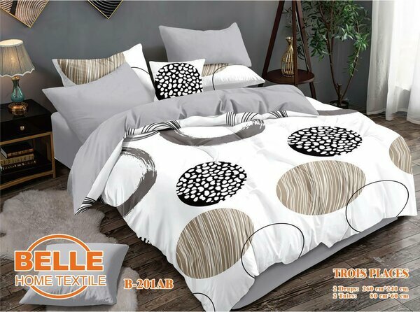 Parure de lit graphique 4 pièces avec cercles gris et noirs. Idéal pour ajouter une touche d’originalité et de modernité à la chambre. Textile doux et confortable.