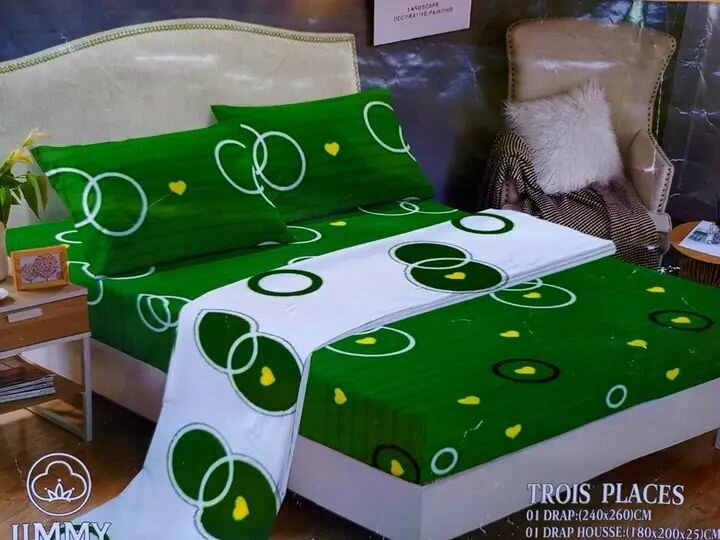Ajoutez une touche d'élégance et de confort à votre chambre avec cette parure de lit moderne aux motifs géométriques. Fabriquée en coton doux, elle comprend un drap plat, une housse de couette et des taies d'oreiller. Idéale pour un lit trois places, elle transforme votre espace de sommeil en un havre de paix chic et stylé. Lavable en machine pour un entretien facile.