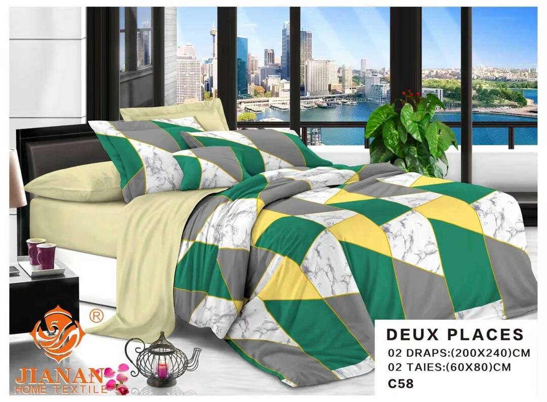 Transformez votre chambre avec cet ensemble de lit vibrant et moderne. Fabriqué en matériaux de haute qualité pour un confort optimal, il comprend deux draps de 200x240 cm et deux taies de 60x80 cm. Idéal pour ajouter une touche sophistiquée à votre décor.