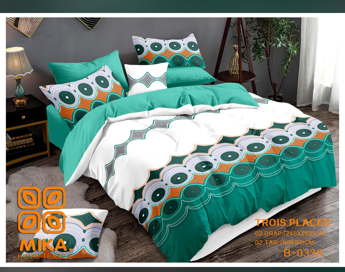 Transformez votre chambre avec cette élégante parure de lit MIKA en coton. Avec un design aux motifs géométriques verts et oranges, elle apporte couleur et modernité à votre espace. Parfaite pour un confort optimal et une décoration chic. Convient aux lits de trois places. Profitez d'un sommeil doux et réparateur.