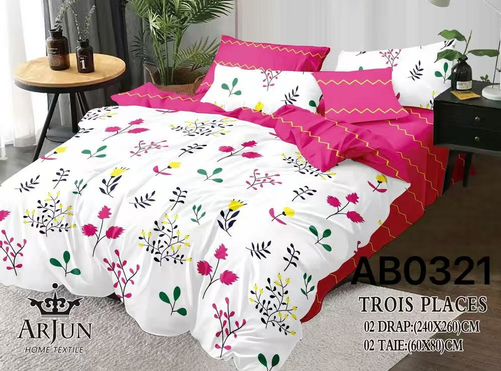 Optimisez votre chambre avec cette élégante parure de lit fleurie pour trois places. Conçue en tissu de qualité supérieure, elle inclut 2 draps et 2 taies (60x80 cm). Idéale pour ajouter une touche de fraîcheur et de modernité à votre espace.