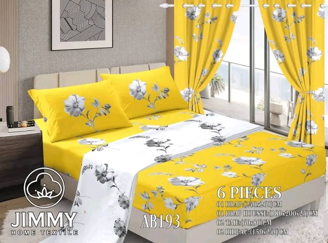 Transformez votre chambre avec cette parure de lit jaune éclatant et floral de 6 pièces. Fabriqué par Jimmy Home Textile, cet ensemble de draps offre une touche de fraîcheur et d'élégance à votre espace. Idéal pour une chambre lumineuse et accueillante.