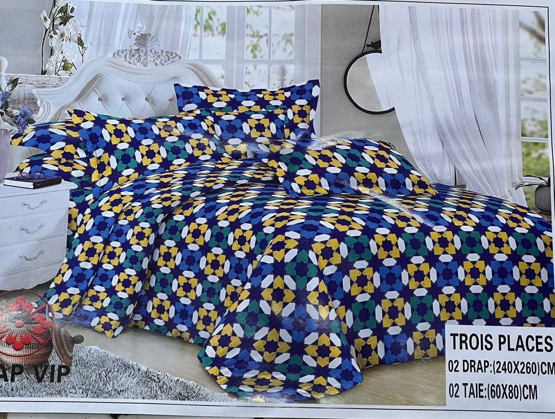 Transformez votre chambre avec cette élégante parure de lit en trois pièces au design géométrique coloré. Confectionnée en tissu doux, elle inclut deux draps (240x260 cm) et deux taies d'oreiller (60x80 cm), parfaits pour une chambre moderne et vivante. Idéale pour ajouter une touche unique et accueillante à votre espace de sommeil.