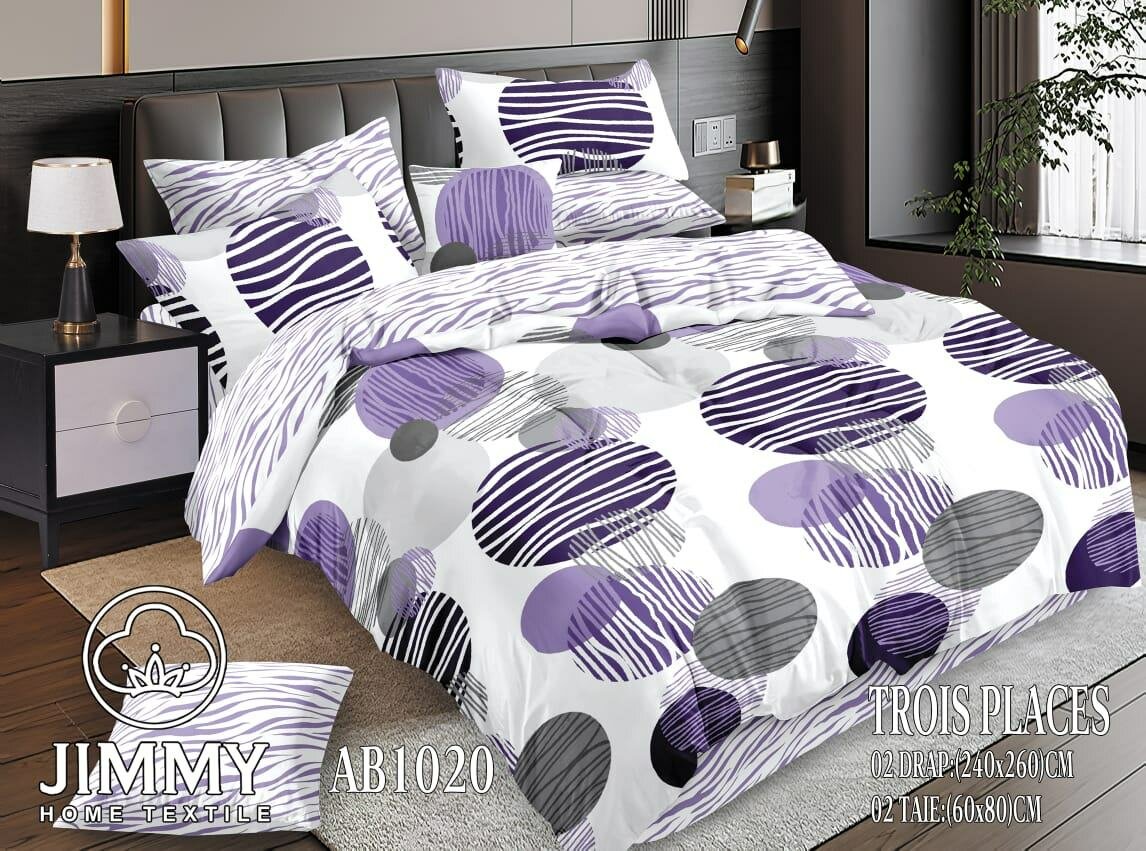 Parure de lit imprimé violet et gris