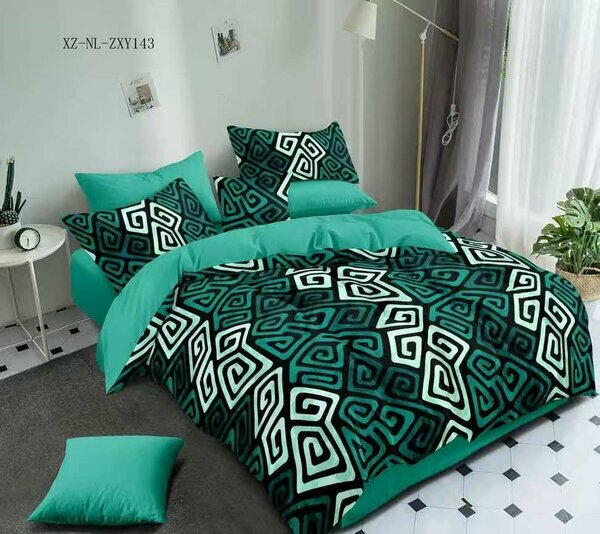 Parure de lit turquoise motifs noirs verts 4 pièces