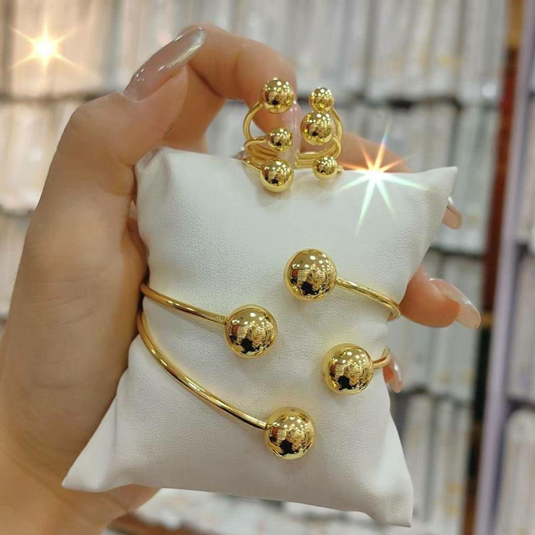 Ajoutez une touche de glamour avec cette parure dorée. Composée d'un bracelet et d'une bague avec des sphères brillantes, elle est parfaite pour les soirées ou les événements spéciaux. Un choix élégant pour compléter votre tenue.