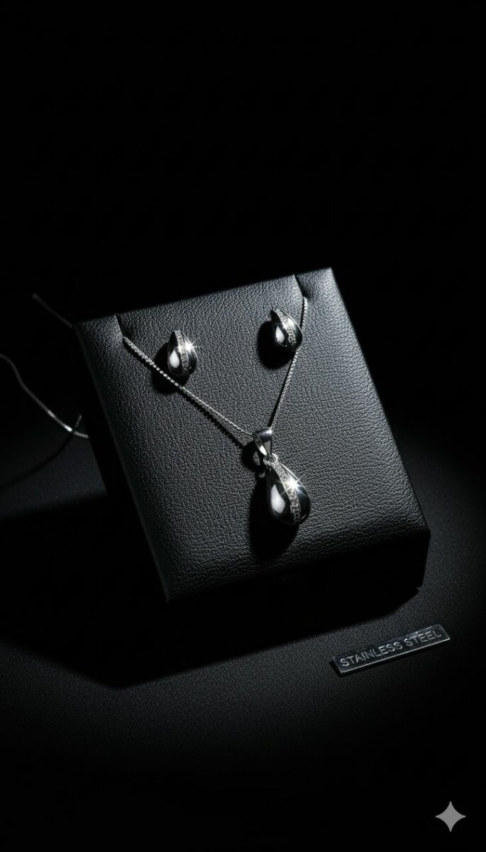 Découvrez cet ensemble de bijoux en acier inoxydable, comprenant un collier et des boucles d'oreilles assorties. Idéal pour ajouter une touche d'élégance à votre tenue quotidienne. Parfait pour offrir ou se faire plaisir.