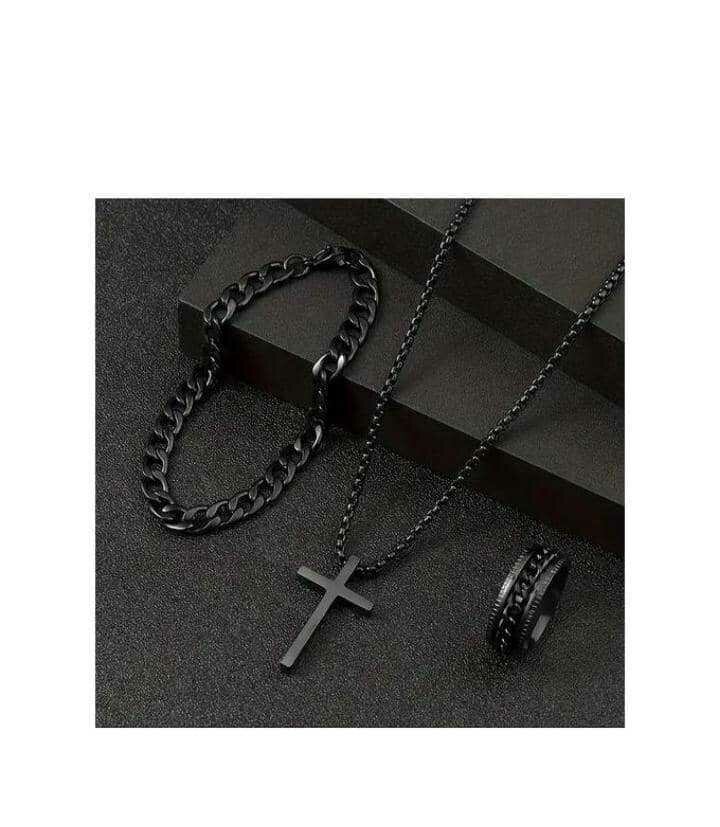 Élégante parure en acier inoxydable, comprenant bracelet, collier et bague. Idéale pour compléter votre look quotidien ou pour des occasions spéciales. Résistante et durable, elle allie style et confort.