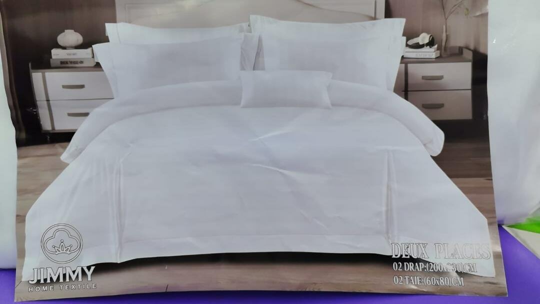 Parure de lit en coton épuré blanc de Jimmy, idéale pour une chambre élégante et confortable. Comprend draps et taies pour un sommeil parfait. Durable et facile à entretenir.