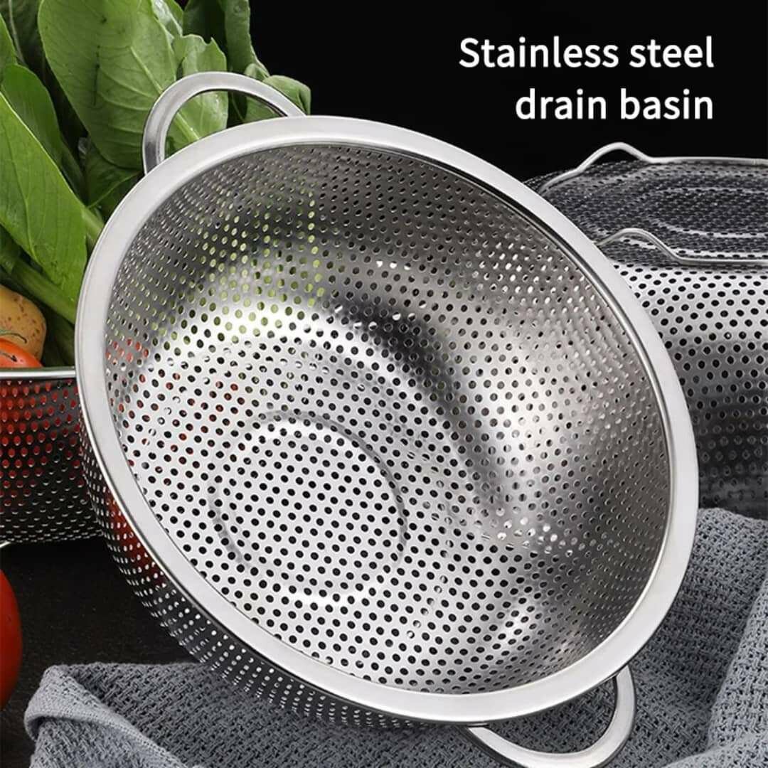 Idéale pour rincer vos fruits et légumes, cette passoire en acier inoxydable est durable et résistante à la rouille. Parfaite pour la cuisine quotidienne, elle ajoute une touche moderne à votre espace culinaire. Facile à nettoyer et pratique à utiliser, c'est l'accessoire indispensable pour chaque cuisinier.
