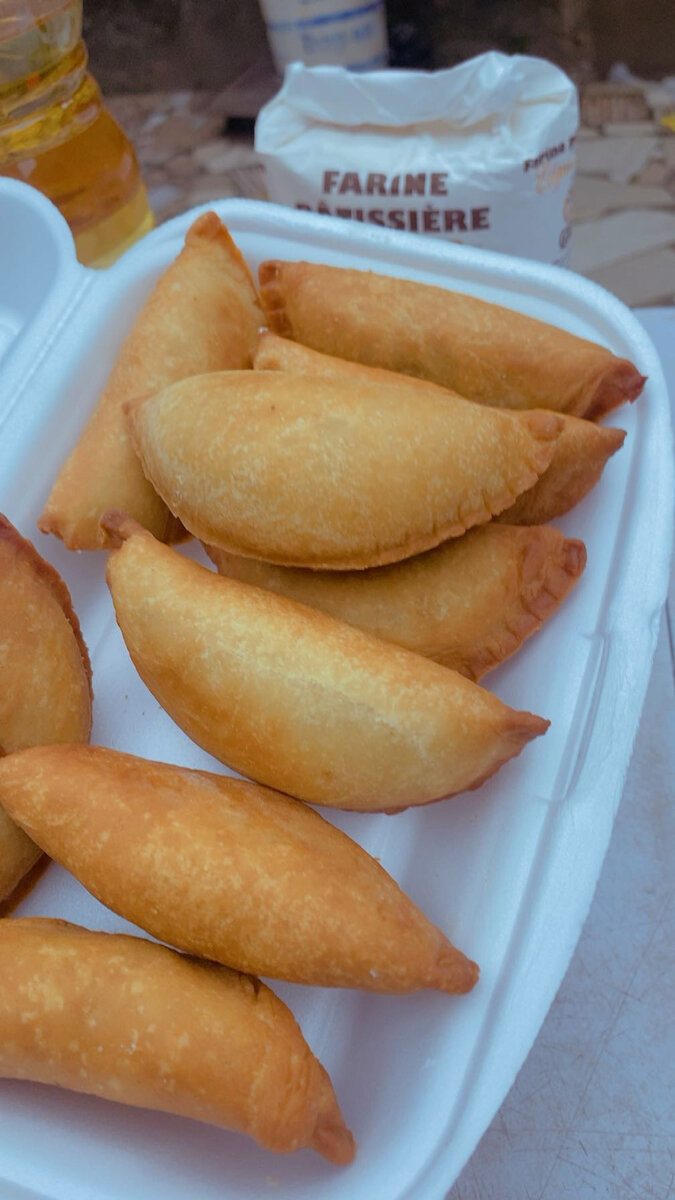 10 pastels au poisson ou aux œufs à 1.000F 10 pastels au saucisson à 1.500F 10 pastels à la viande hachée à 2500F