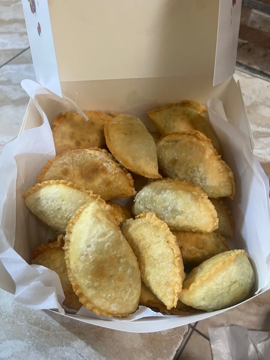 Indulge in a box of crispy, golden empanadas, perfect for parties or a delicious snack. Savory filling inside a perfectly fried pastry shell. Ideal for sharing with friends and family.