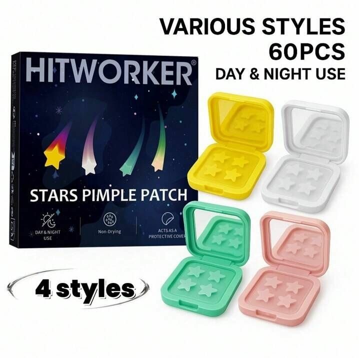 Découvrez les patchs étoilés Hitworker pour une peau sans imperfections. Utilisation jour et nuit, compact et facile à transporter avec miroir intégré. Parfait pour les soins quotidiens.