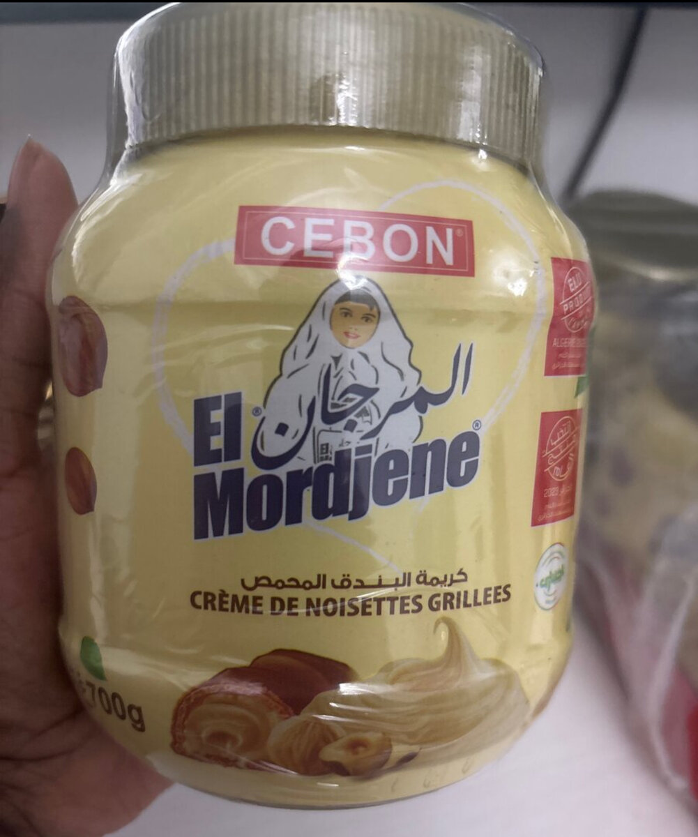Pâte à tartiner El mordjene goût kinder Bueno. Un régal pour tartiner vos pains vos desserts et pâtisseries. Un goût noisettes chocolat excellent