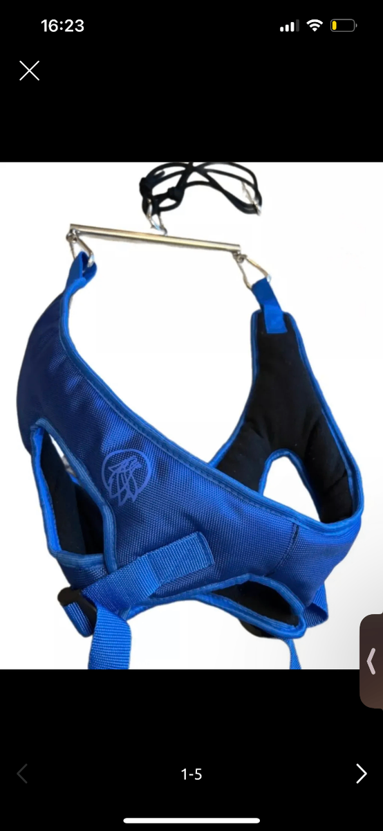 Тканевый тренажер помогает вытянуть позвонки под нагрузкой, улучшая кровообращение в области шеи и спины.