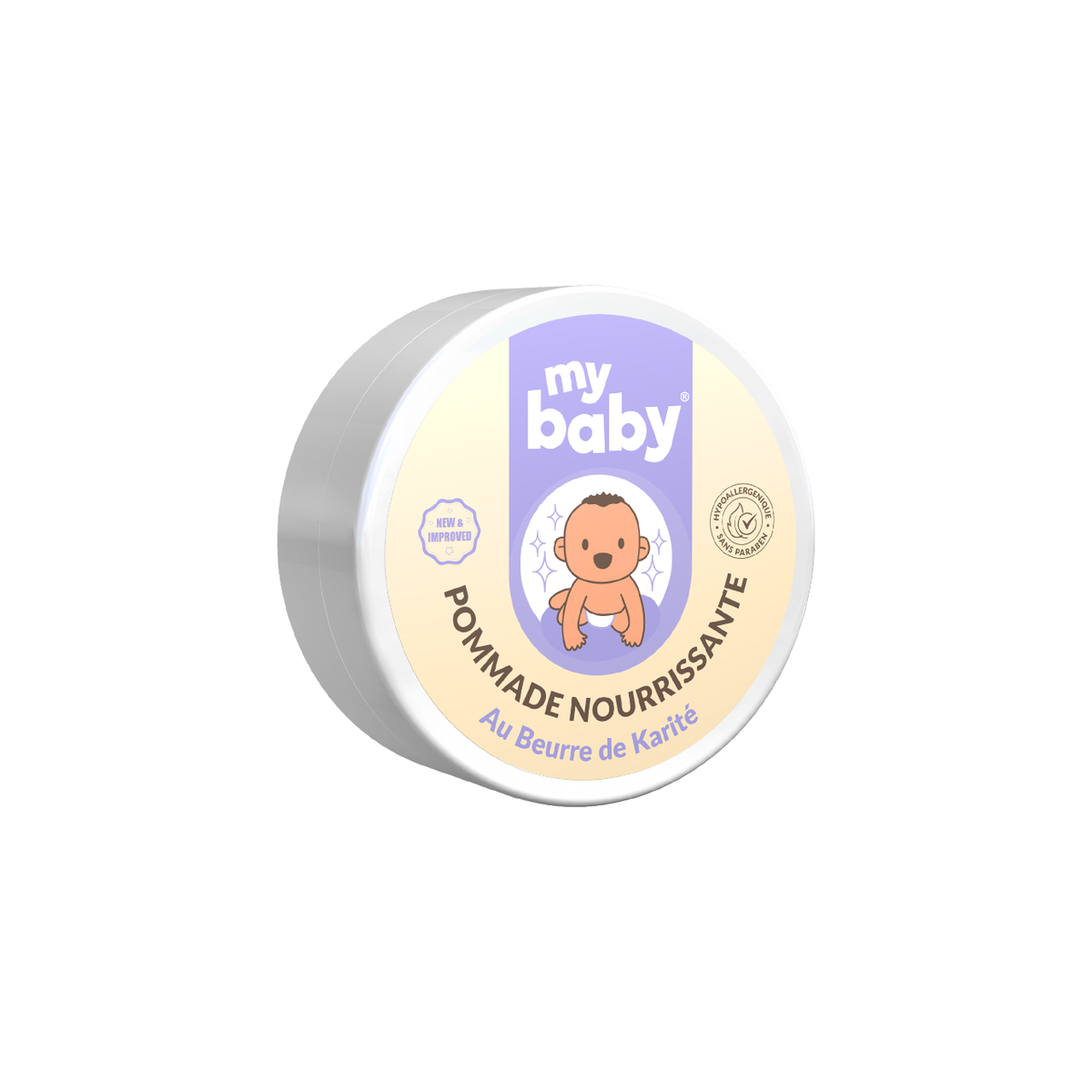 Riche en vitamine E, huile d'amande douce et beurre de karité, la pommade nourrissante My Baby entretient la peau de bébé et procure une sensation de confort immédiat