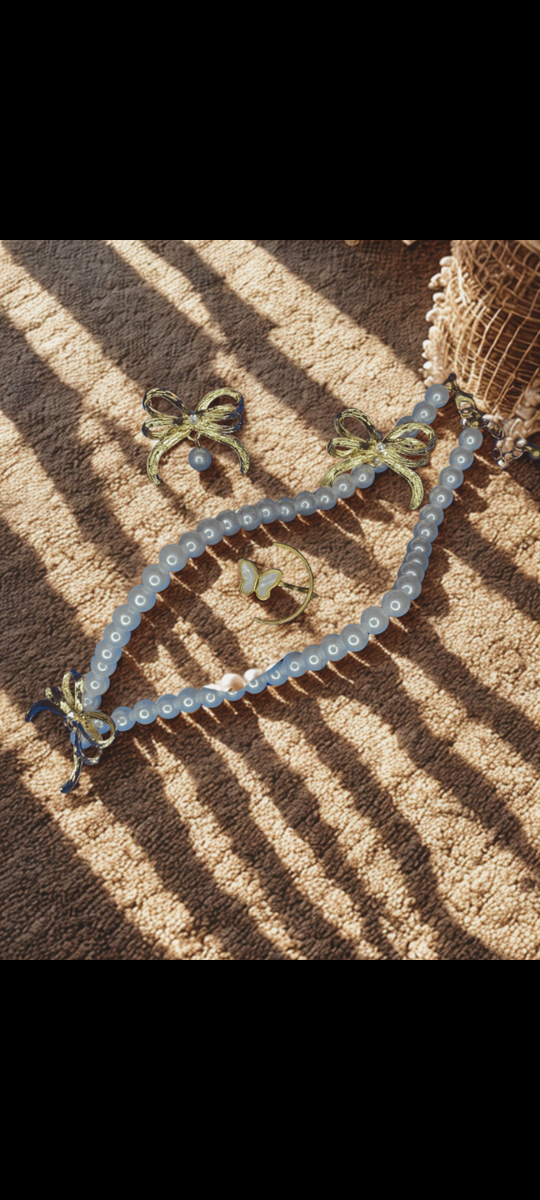 Elevate your style with this elegant pearl necklace and earrings set. Featuring a gold bow motif with pearl accents, this jewelry set is perfect for any occasion. Made with high-quality pearls and gold-plated details.