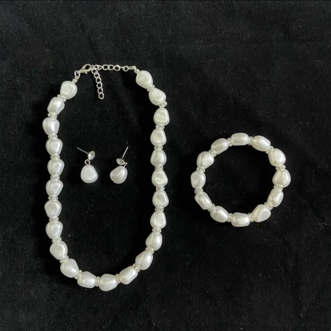 Pearl Jewelry Set - Necklace, Bracelet, Earrings