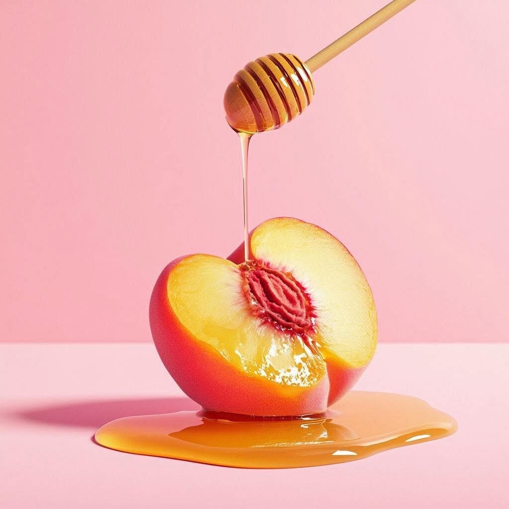 Savourez la douceur naturelle d'une pêche juteuse nappée de miel doré. Idéale pour des desserts gourmands ou des collations saines. Un véritable délice sucré et fruité à partager.