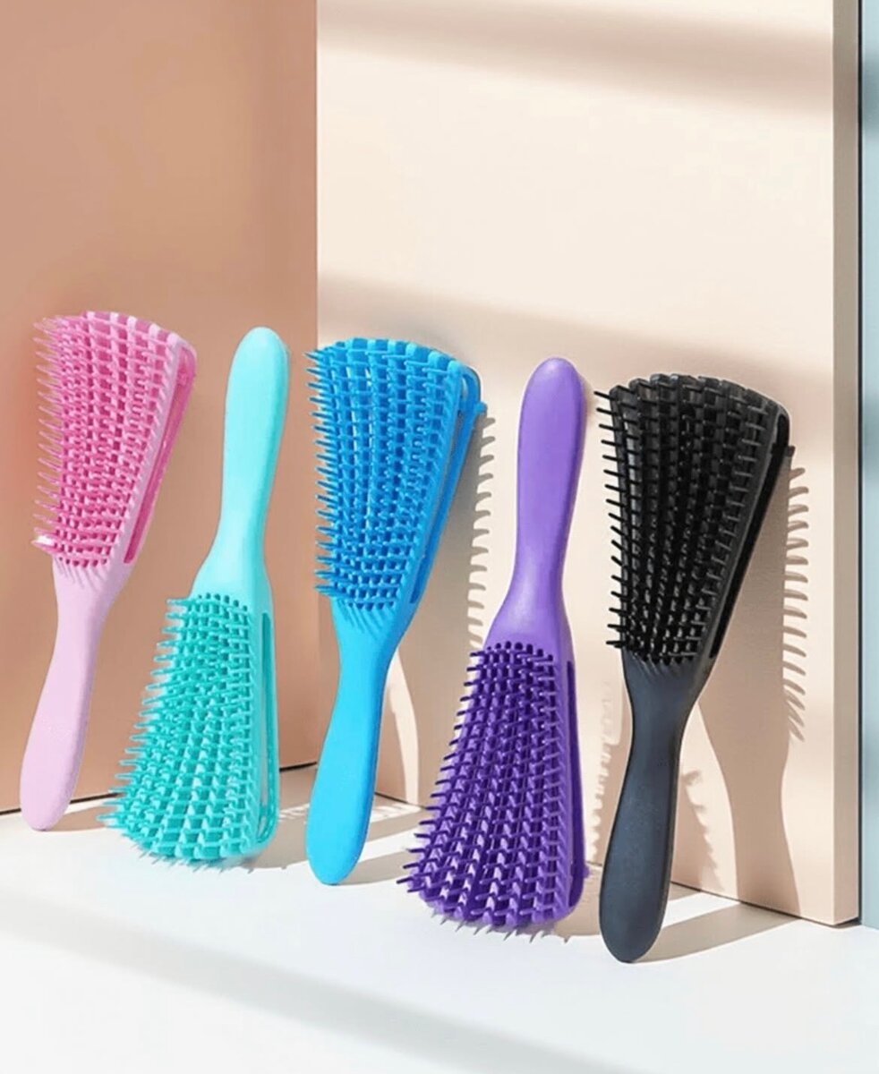 Brosse démêlante douce pour cheveux bouclés, facile à utiliser et à nettoyer. Poils souples, manche ergonomique.