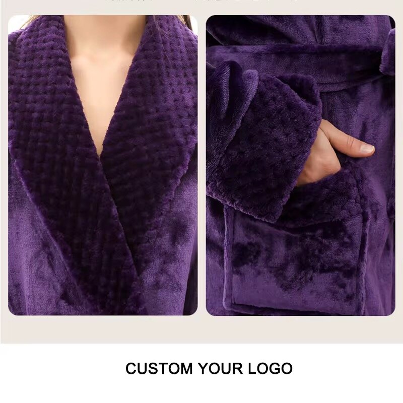 Peignoir de bain personnalisé, mode couple, flanelle épaisse, vêtements de nuit unisexes , chemise de nuit de salle de bain de luxe extra longue.