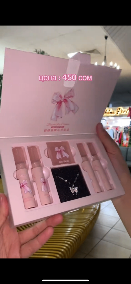 комплект, 4 оттенка помады, румяна и цепочка бабочки