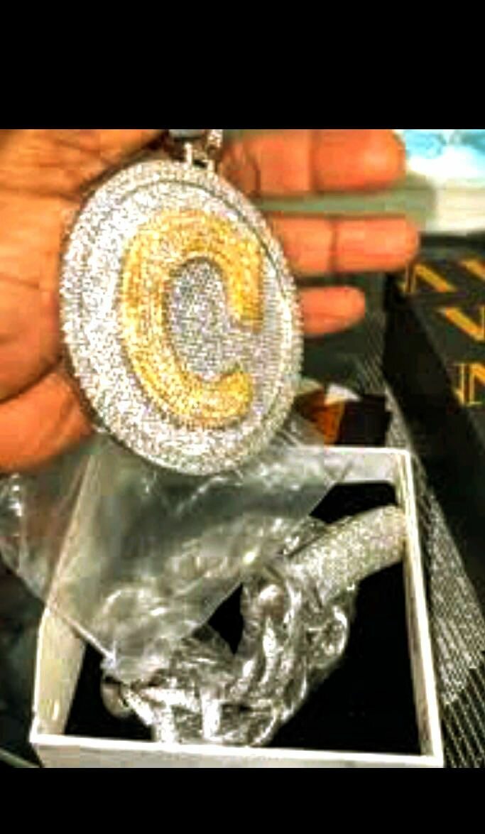 Pendentif lettre C en zircone cubique pour homme, bijou de luxe en argent sterling, collier personnalisé avec chaîne