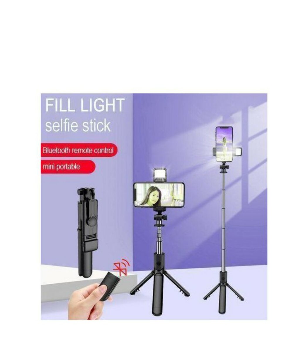 Perche à selfie moderne avec éclairage intégré et télécommande Bluetooth. Idéale pour des photos parfaites en toute luminosité. Compacte et portable, elle est parfaite pour les voyages et les réunions de famille.