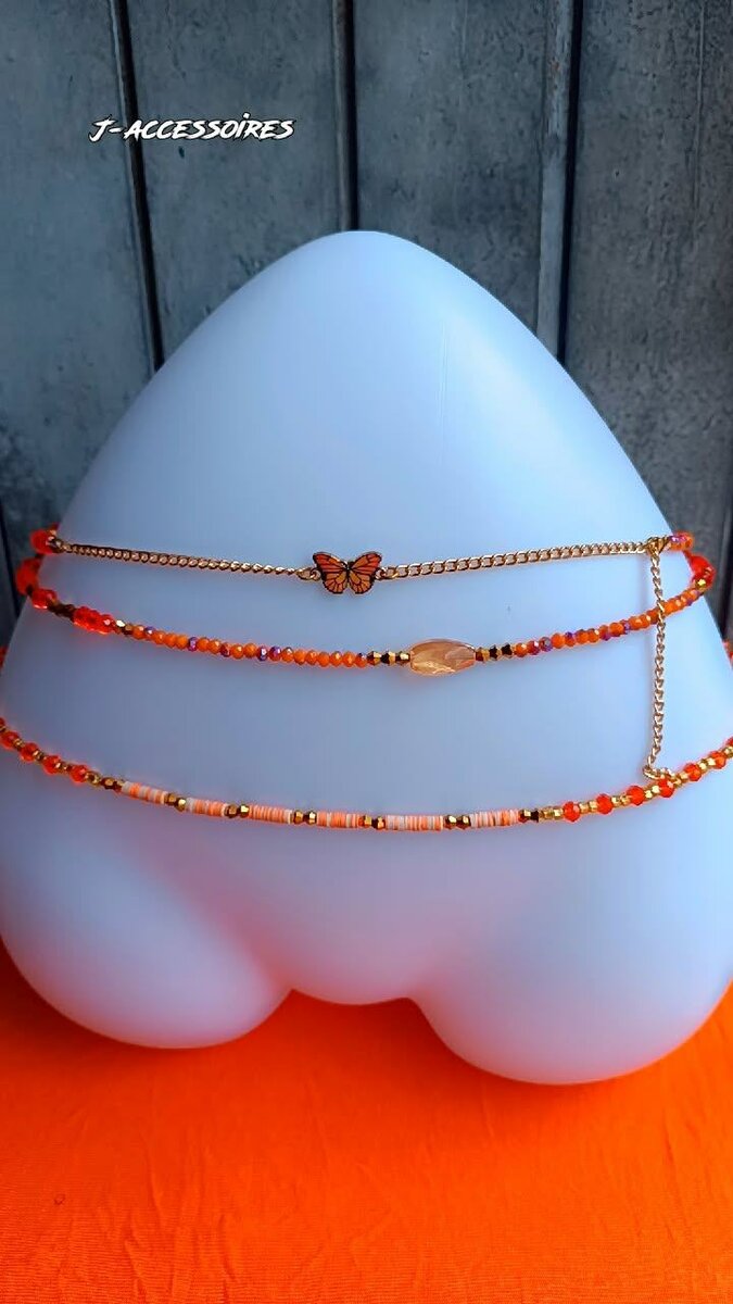 Ajoutez une touche sensuelle avec ces perles au rein papillon, parfaitement conçu pour l'été et les tenues en biķini. Les détails dorés et les perles orange apportent une allure unique.