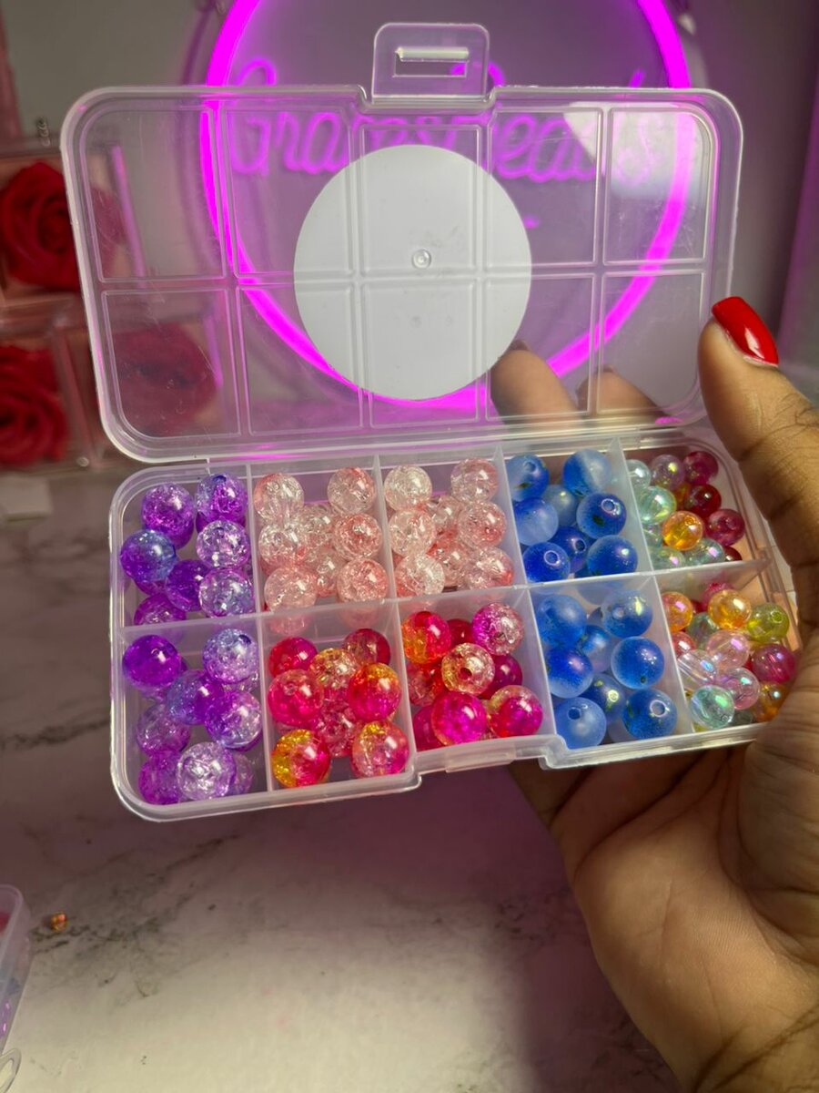 Boîte de perles colorées