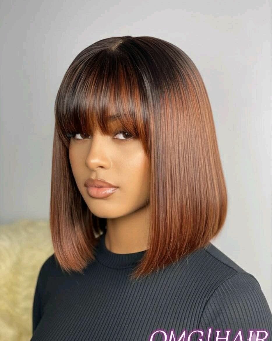 Adoptez un look chic et sophistiqué avec cette perruque Bob brune de haute qualité. Conçue pour offrir un aspect naturel, elle est parfaite pour toutes les occasions. Sa coupe moderne avec frange ajoute une touche élégante et contemporaine à votre style.