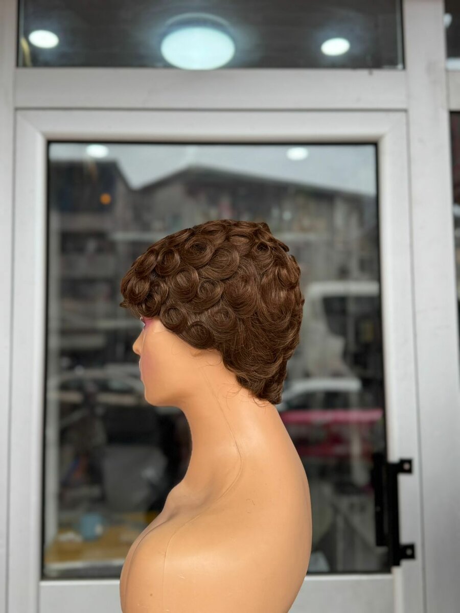 Découvrez notre perruque courte bouclée de couleur marron, parfaite pour un style naturel et élégant. Conçue pour un port confortable, elle est idéale pour toutes occasions. Transformez votre look en un instant avec cette perruque facile à entretenir et qui reste en place toute la journée. Idéale pour un usage quotidien ou pour des événements spéciaux.