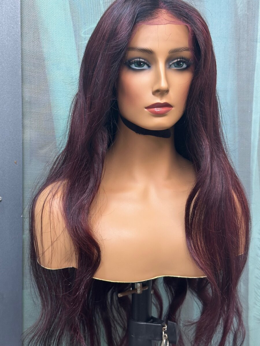 Perruque de qualité Virgin, longueur 30 avec une frontal hd 13x4. De couleur rouge bordeaux.