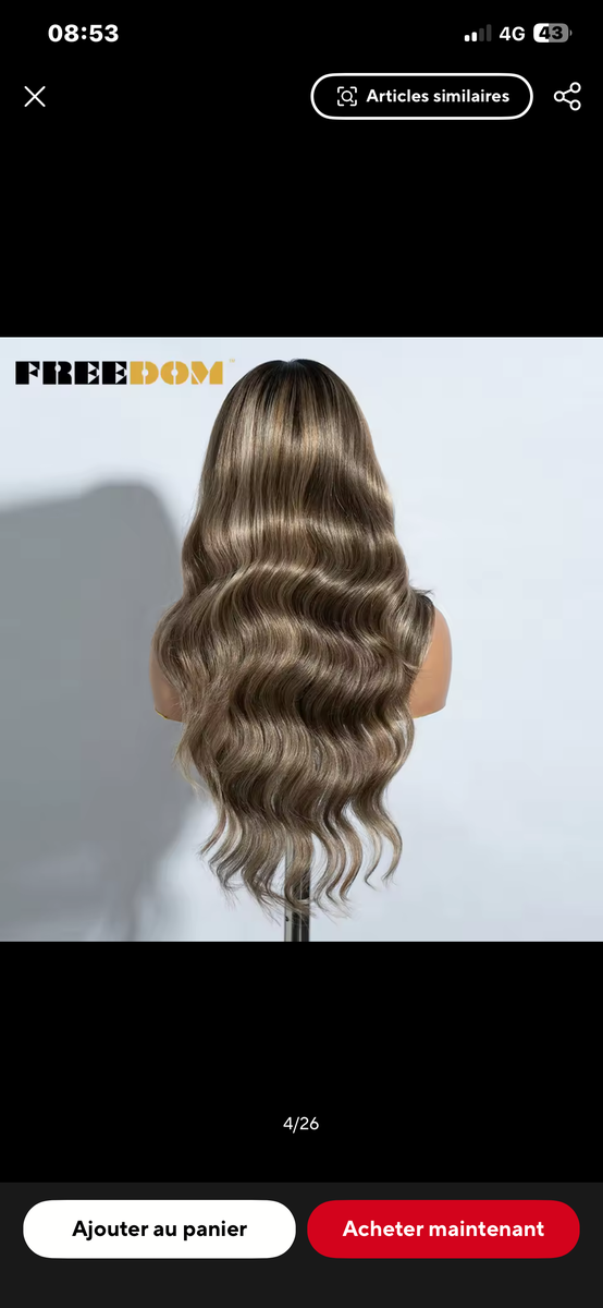 Découvrez notre perruque longue et ondulée, parfaite pour transformer votre look en un instant. Fabriquée avec des matériaux de haute qualité, elle offre un aspect naturel et un confort optimal. Idéale pour toutes les occasions, elle s'ajuste facilement et reste en place toute la journée. Offrez-vous une nouvelle allure glamour avec cette perruque indispensable à votre collection.
