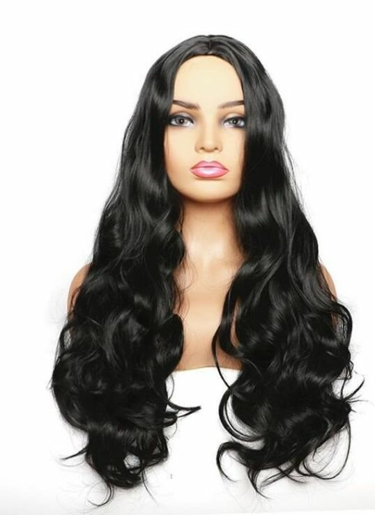Perruque ondulée noire longue