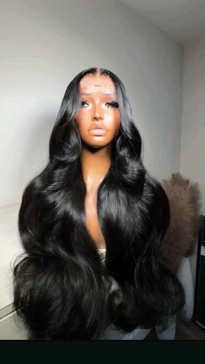 Perruque longue ondulée noire