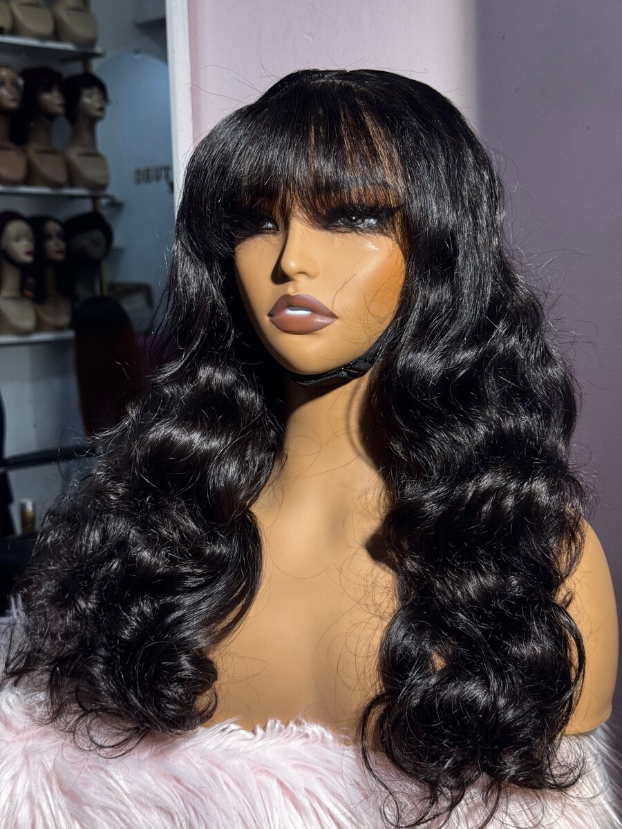 Apportez du glamour à votre look avec cette perruque ondulée luxueuse, dotée d'une frange élégante. Facile à coiffer et parfaite pour toutes les occasions, elle offre un style naturel et sophistiqué. Idéale pour divers événements ou un usage quotidien, cette perruque transforme instantanément votre apparence en vous faisant sentir confiante et belle.