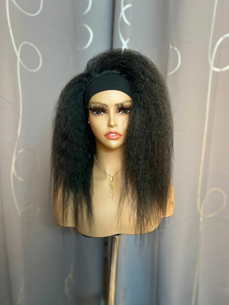 Perruque synthétique longue noire avec un bandeau, idéale pour un look naturel et glamour. Facile à porter, convient pour des occasions spéciales ou au quotidien.