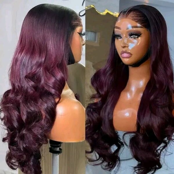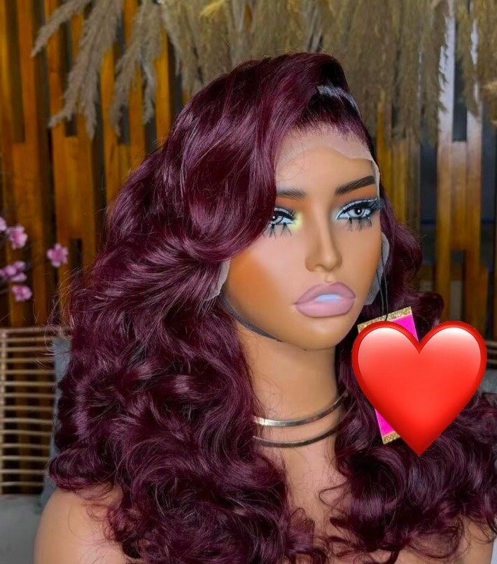 Perruque ondulée bordeaux